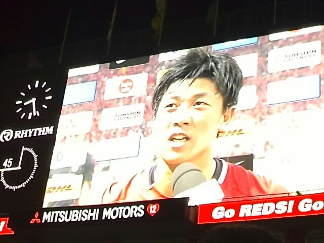 前節から好調の宇賀神。どうしちゃったのでしょう?(笑)。GKとの1対1は…あれは入ってもらいたかったですね!ボールに変な回転が掛かっていたのか、私の席からはポストに当たって入るだろうと思ったら、変な方向に弾け飛んでしまいました。えーっ!入らないのかよ!って感じでした(笑)。宇賀神にはこの好調を維持してもらいたいですね。