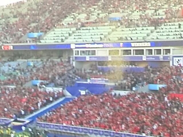 さて自分も録画しておいた試合を日曜午前中、大阪出張出発前に急いで(笑)見直しました。テレビ中継は表彰式までタップリ映してくれたのは良かったのですが、李が喋っている途中でスポンサーのテロップが出ていきなり終了はズッコケましたね。まあ民放らしい終わらせ方ではありましたが、まあ試合が90分で終わらなかったので延長枠もギリギリ精一杯だったのでしょう。