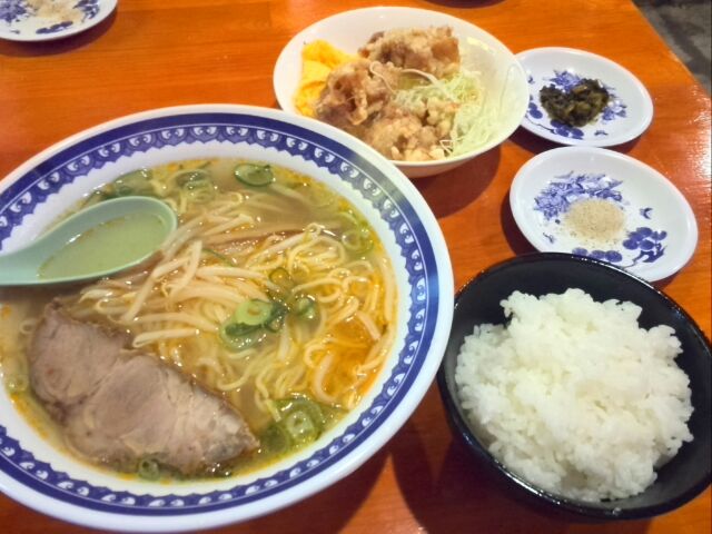 ただこの店、店員2人居るのにやたら出て来るの遅いし、先にラーメンが出て他のが時間差で出て来るし、だいたい昼飯時なのに自分ら以外は誰一人として来客無し。大丈夫なのか?