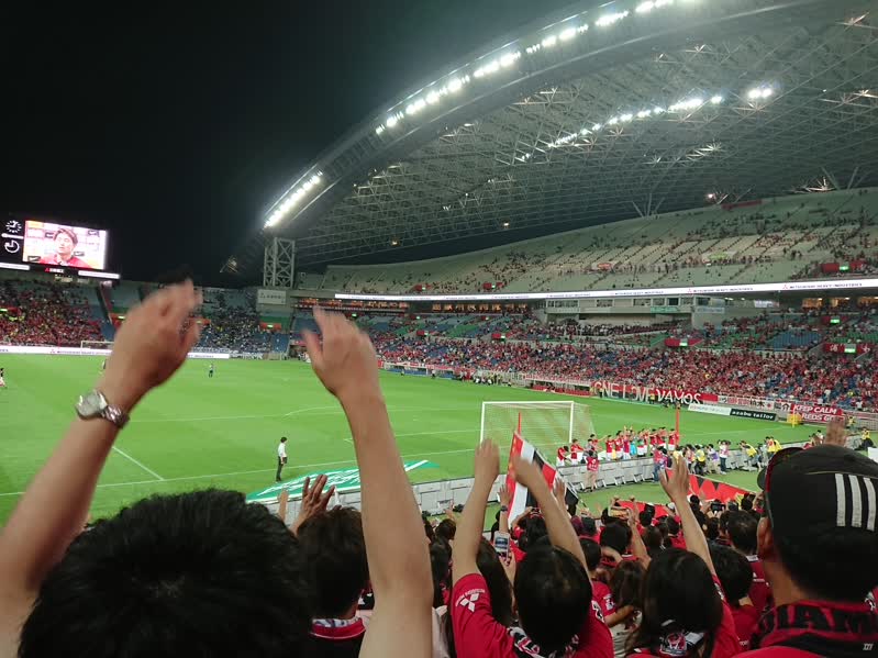 鳥栖戦・広島戦と参戦しました。鳥栖戦はのできは、まさにミシャ解任レベルの試合で、ガックリして、夜中高速を宮崎まで飛ばして帰りました。3年前の惨劇と同じくグッタリしましたね。そして今回期待しないで埼スタに行きました。期待していないといいつつも、埼スタに近づくとテンションが上がるものですね。レッズサポの悲しい性でしょうか(笑)。しかし試合内容は先行して追いつかれ、逆転。関根の逆転弾がなければ鳥栖に続きがつくり試合でしたね。内容は・・・ですが。まあ、埼スタで凱歌が唄えたことが良かったです。娘2人も初埼スタ参戦で勝てて、レッズサポに取り込めました。柏木が良いとか、関根が可愛いなどと言ってました。浦和に戻って力で家族全員で祝勝会。周りはレッズサポの酔っ払いだらけで、娘たちも楽しかったと満足してもらえました。前節の鳥栖地獄から、うって変わって最高の1日になりました。勝つことがいかに大切かと言うことですね。とはいえ次節川崎戦は、地獄が待ってそうで怖いですね。