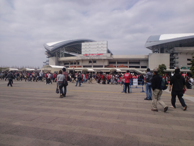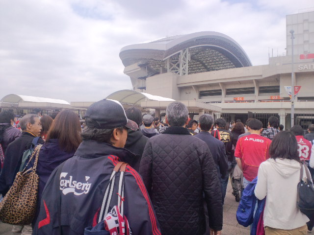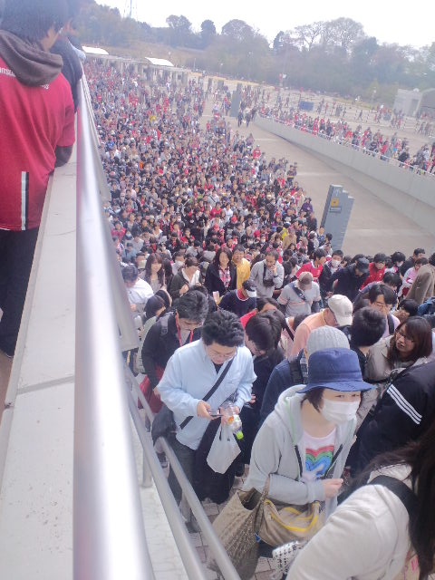 もはやどう考えても、キックオフ13時までに人が入りきらない。運営側もようやく間に合わないと判断したのか、途中から南門が開放された(始めからそうしとけばここまで混雑しなかったのに・・・)。