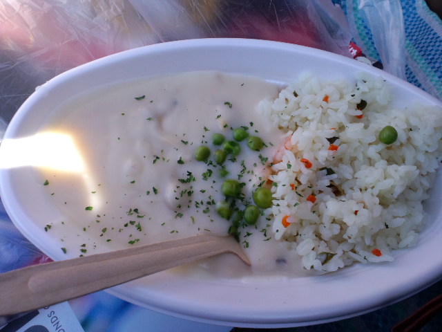 今回美味かった「クリームソース付きシーフードピラフ」でも。つーか海老しか入ってないから、正式には海老ピラフでは・・・?