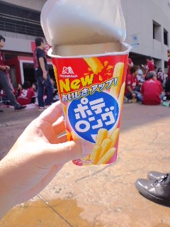 買った時に近くのアベックに「レッズサポなのにレッド?赤食べるんだ・・・」とボソッと言われた。