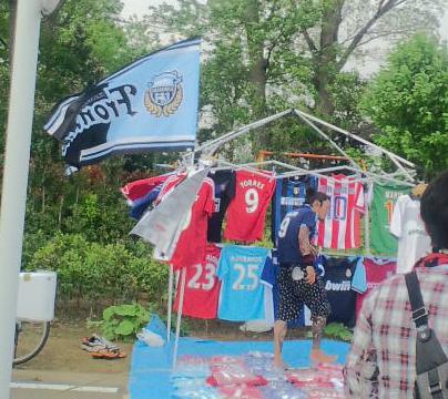 海外ユニのバッタもん屋、レッズのホームで、しかも対戦相手もマリノスなのに、何故にフロンターレの旗が・・・?