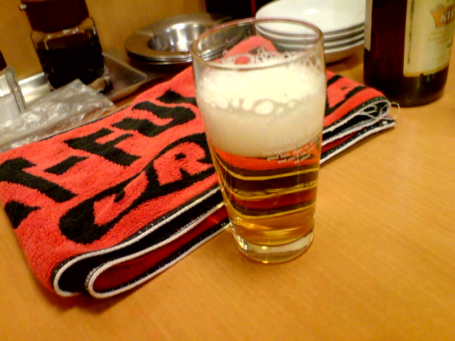 引退タオマフにもお疲れ様のビールを・・・
