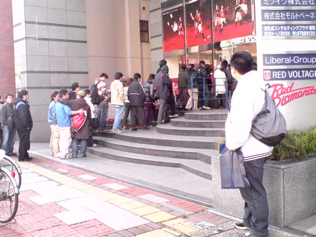 掲示板によると、発売開始直後は、去年の教訓がまったく生かされずに、客が直接ユニを取る仕組みで大混乱が起きていた模様だけど、これを見た客がRVにかけあって、途中から店員が注文を聞いて品物を取りに行く仕組みに変えたらしい。これで列の進行がいくらかスムーズになったんだね。RVに指摘してくれた方に感謝感謝。