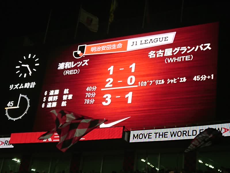 得点/40分・遠藤(浦)、45+1分・シャビエル(名)、70分・槙野(浦)、78分・遠藤(浦)